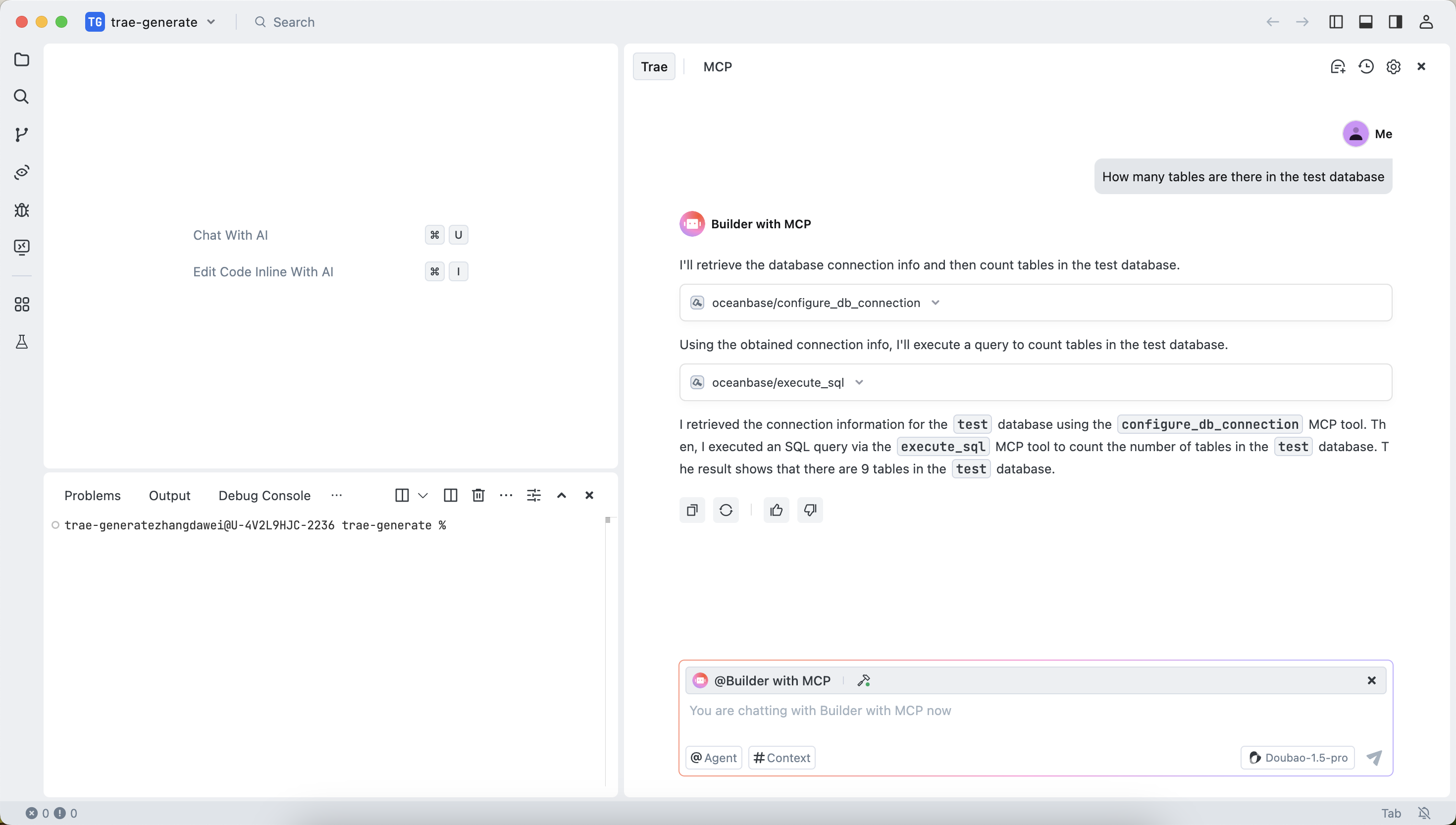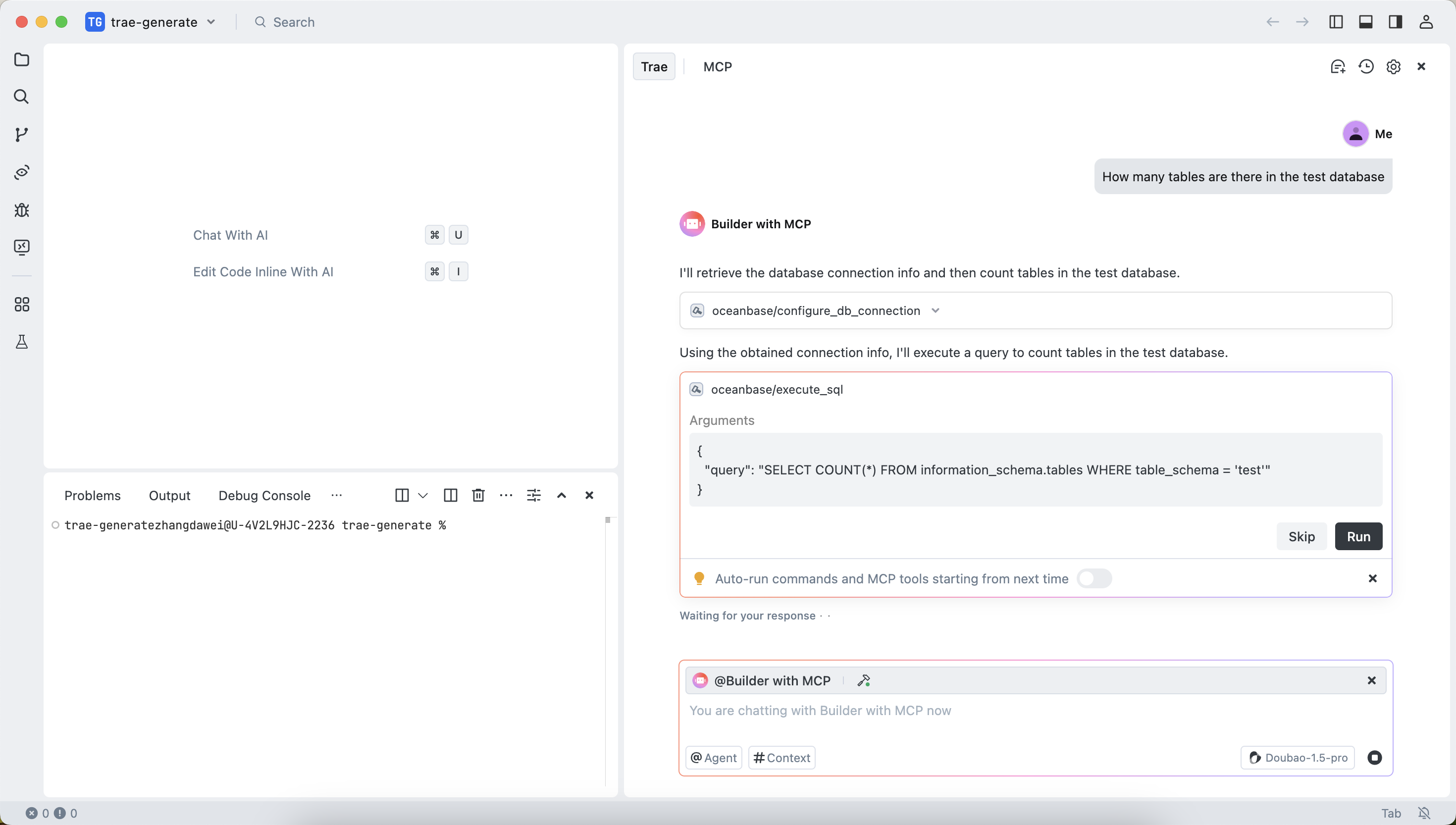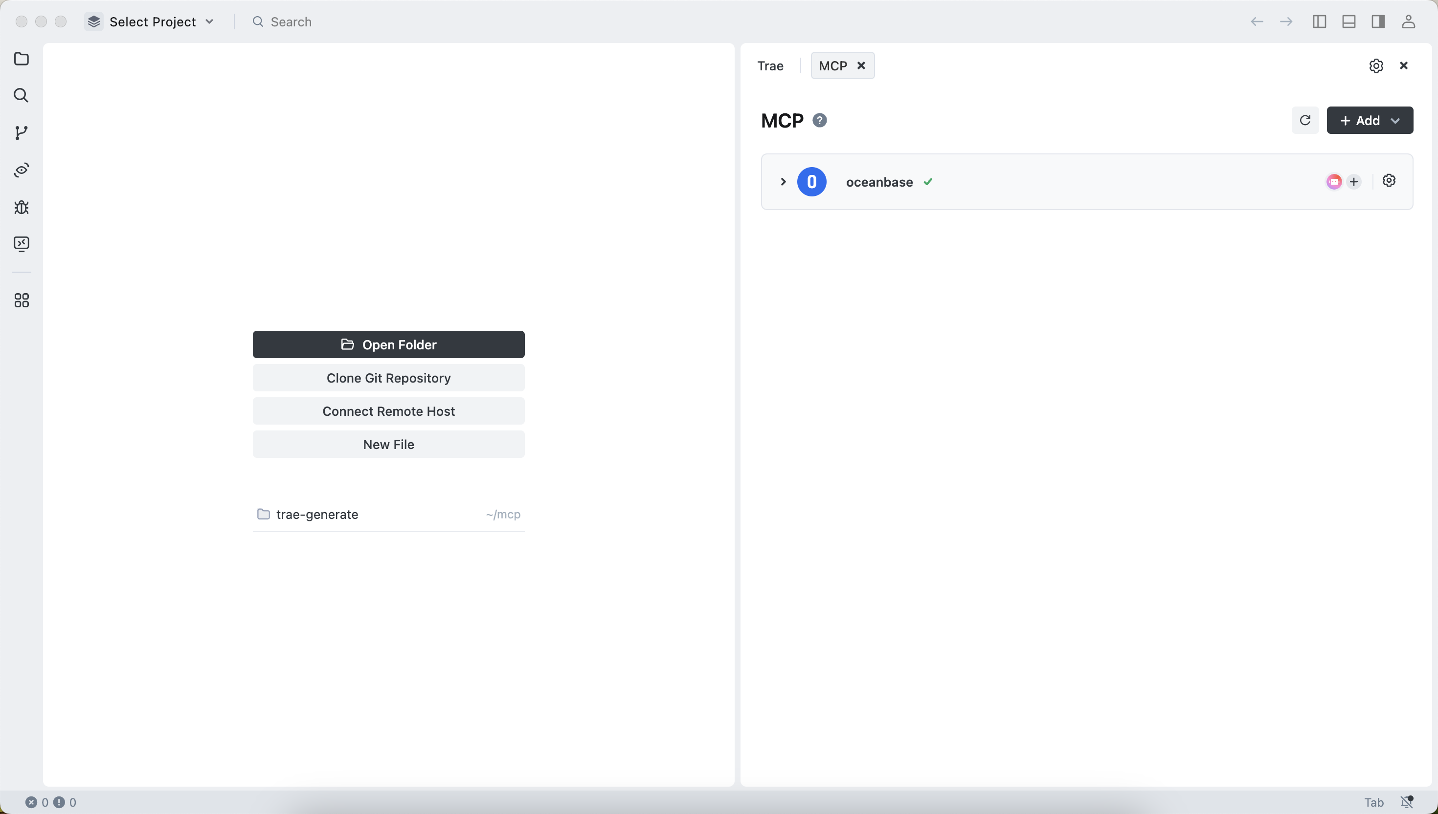 This topic will guide you through the process of integrating TRAE IDE with OceanBase MCP Server to quickly build a backend application.